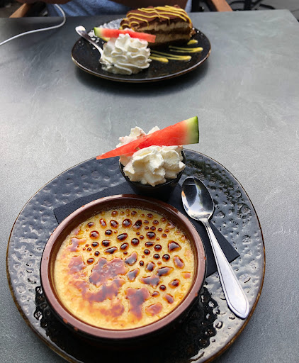 It was nice being on a terrace again, however this was such a weird experience. They first forgot part of our order which can make sense considering that there are only two waitresses. Then they forgot to give us spoon for our soup. Then when we asked for dessert they said they do not serve dessert today while there were a lot of people around us having dessert. The food quality was not the best. The onion soup was good and the food came...