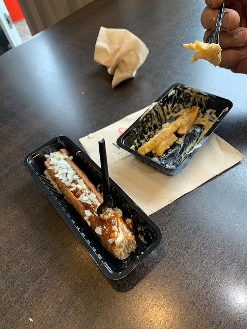 Read moreSmerige tafeltjes en stoelen binnen en dan heb ik het niet over een paar kruimels. Radio stond veel te hard, gelukkig scheen het zonnetje en konden we buiten eten. Dan het eten, na lang wachten (Bijna 10 minuten en we waren de enige gasten) waren we vol verwachting, maar helaas. Met de friet was op zich niks mis maar de porties waren schandalig klein. Bakjes net tot aan de rand gevuld waarbij het ene bakje na even schudden nog niet eens tot de rand was gevuld. Kortom niet voor...