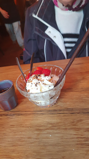 And then the desserts...... Damn,... awesome. The stroopwafel bavarois was very good. Sweet but very tastefull. Just like the tastery. Very much for one person but all was eaten.:-) The dame blanche was just as it should be. With the chocolate sauce aside.