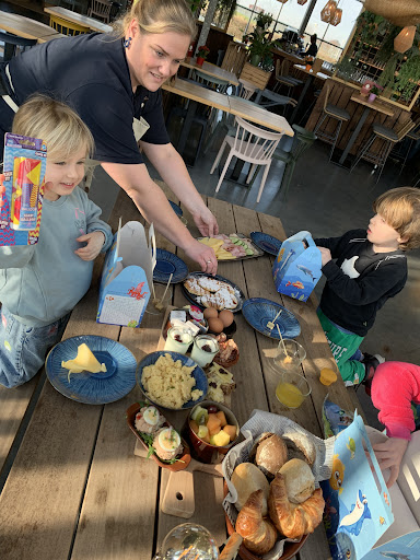 Heerlijk ontbeten voor €15,- per persoon. Met verse jus d’orange, croissantjes, lekkere broodjes, verrassingsbox voor de kids (gratis!) en heel diverse beleg. De kinderen hebben een hele eigen ruimte waar ze kunnen spelen, maar je kunt ze wel zien. Foto’s van de ruimte kun je vinden in de bijlage. De sfeer en aankleding is verder ook leuk: Veel groen.