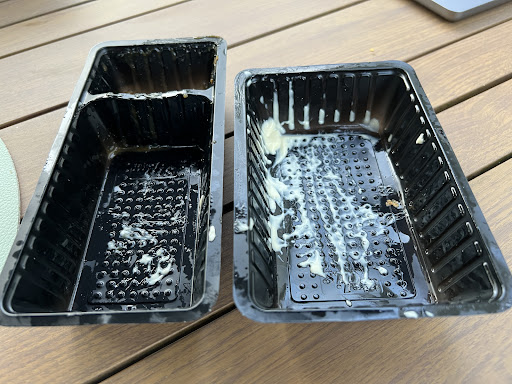 Zojuist 2 x friet gehaald : 1 x friet puur en 1 x friet met pindasaus. En wat bleek toen we beide zakjes openden? Het frietje puur (€ 2,30) zat in een groter bakje en was normaal gevuld. Het frietje met pindasaus (€ 3,15) zat in een echt veel kleiner (smaller en minder lang) bakje en was ook nog eens heel karig gevuld. Zat zelfs een kuiltje in. Kon zo de bodem zien. Dat verwacht je niet als je patat afhaalt. Eigenlijk moeten beide porties friet even groot zijn. Het verschil in prijs zit 'm immers in de extra saus. Bovendien was de friet slap. Zeer teleurstellend. Voortaan maar naar de concurrent wat verderop in de...
