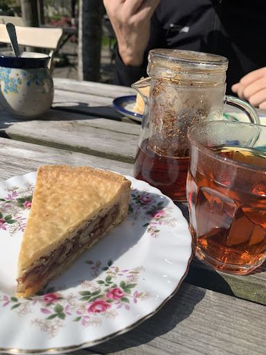 A hidden gem!A garden filled with vegetables and flowering seasonal plants surrounded by the walls of an old estate.Have a cup of coffee with homemade pie or treat yourself to. lunch sitting on a bench under a trellis filled with grapes.Don't forget to get some organic vegetables and a lovely bouquet of flowers on your way out.And there's indoor seatimg too,in a small hothouse heated by a woodburner Bliss...