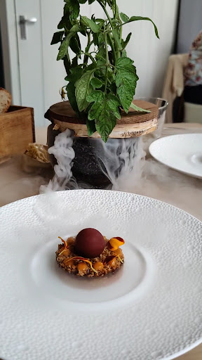 Read moreFantastisch! Wat hebben we heerlijk gegeten gisterenavond. Het begon al direct goed bij binnenkomst door de hartelijke ontvangst. Na een huisgemaakte cocktail kon onze "ontdekking" van 6 heerlijke gerechten beginnen. We kregen om te beginnen een aantal smakelijke amuses van het huis die stuk voor stuk kleine smaak sensaties waren. Het was een opmaat naar een prachtig diner en een geweldige avond. Het bijpassende wijnarrangement maakte de beleving compleet! Zoveel fantastische smaak combinaties in precies de goede porties en met zoveel verschillende structuren. Het was genieten! Het feit dat alle gebruikte ingredienten uit eigen tuin en van locale leveranciers komt is geweldig. Er wordt gekookt met hele 'basic' groenten en kruiden die vervolgens omgetoverd worden tot zeer smakelijke maar ook spannende combinaties. Het is pure magie op je bord. Tel daarbij op dat de gerechten eruit zien als kleine kunstwerkjes en dat alles wordt gerserveerd door een kundig en zeer enthousiast team. Kortom een feest om hier te mogen eten! We komen heel graag weer terug. Omdat er bijna uitsluitend met verse producten uit de tuin en van het seizoen wordt gekookt, wijzigt de samenstelling van het menu ook zeer regelmatig. Het zal dus steeds weer een nieuwe 'ontdekking' en beleving zijn. Wij laten ons de volgende keer graag weer verrassen!