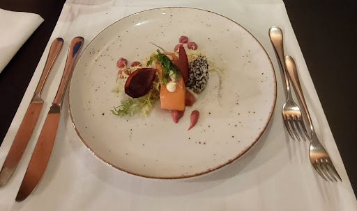 Read moreWinnie our waiter suggested to go with a surprise dishes from the chef. We accepted and he only asked us about how many courses and our dietary restrictions...wow we got as 1st a kind of fish tart and as a second a beef filet over a bed of mashed potatoes and other garnishes and...