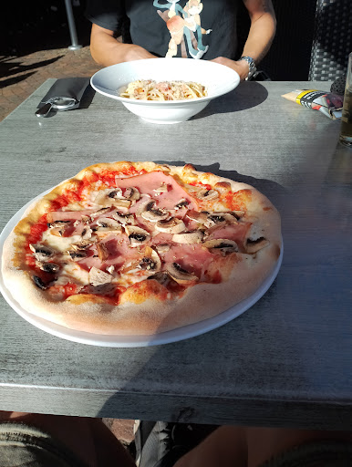 To start it of we had reserved a table outside, but they gave us a table inside. We had to wait one and a half hours for our starters. They either had a lot of fantasy with the bruschettas or they just didn't care. (Since when does a bruschetta have twice the weight in bread in melted cheese?) At first we didn't have knives and forks and napkins, so we asked for them which took a while. They gave us the wrong drinks like 3 times or so including the wrong wine and when we asked for a jug of water they gave us a glass of water, so we asked for a jug but then they didn't give us any glasses! While waiting for my pizza I started to feel a bit sick, which might have been the bruschetta's but I'm not sure. After waiting a long while we finally got our main course. The crust of my pizza was about 3 to 4 centimetres thick, the cheese seemed quite cheap and it seemed like they had some fun in the kitchen trying to throw the toppings on from the other side of the kitchen... When I picked up my first slice the toppings slid of immediately because the dough was a bit soggy and there was a lot of wet sauce build-up in between the bread and the cheese - I didn't really feel like...