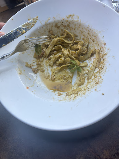 Een minpuntje is dat de porties van de pasta's niet altijd erg ruim zijn en ook regelmatig lijken te verschillen (ze hebben verschillende soorten borden). Daarnaast krijg je helaas geen kaasbakje meer om zelf de extra kaas over je pasta te strooien/verdelen als je om extra kaas vraagt, dit was eerder wel zo. Bovendien wil de kwaliteit (smaak) van het eten ook soms wel eens wisselen, dit lijkt af te hangen van welke kok er is.