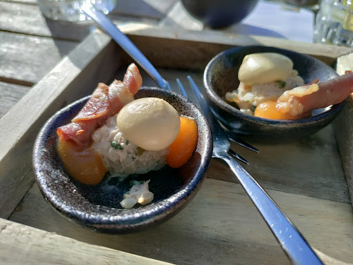 Read moreWij gaan weg met gemengde gevoelens. Hoewel we dachten dat het een bib gourmand is, zoals geadverteerd op de website, was dat het begrijpelijk niet meer. Het eten is erg goed, mooi opgemaakt ook en de amuses tussen de gerechten door zijn zeer smaakvol. De bediening daarentegen is zo onervaren dat het een behoorlijke chaos is. Niets ten nadele van de nieuwe personeelsleden, maar het is overduidelijk dat ze geen aansturing & coaching krijgen van iemand met enige ervaring. Het jonge personeel is volgens ons zeer bereid om te leren en doet echt hun best alles zo goed mogelijk te doen. Daarom is het des te pijnlijk om te zien dat er nog veel fout gaat: borden worden uitgeserveerd zonder uitleg wat de chef voor moois heeft bereid, het bijpassende wijn-menu wordt zonder uitleg ingeschonken (behalve één: dit is een chardonnay, onze huiswijn) en ten slotte kregen we na het tussengerecht dezelfde amuse als vóór het tussengerecht. Ik ben er van overtuigd dat een goede ervaren gastheer/vrouw het jonge personeel op weg kan helpen. De focus moet liggen op: per persoon 2 of 3 tafels volledig verzorgen en precies weten wat er op het bord ligt. Dit zal meer rust geven en de kwaliteit ten goede komen. Helaas komen wij voorlopig even niet terug, wellicht dat we het over een jaar nog eens een kans...