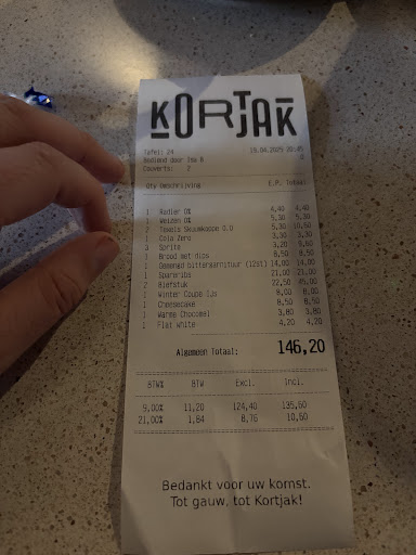 De serveerder binnen deed duidelijk zijn best, maar oogde erg gehaast. Elke keer een snelle interactie en dan direct weer door â het voelde wat vluchtig. Toen we later binnen gingen zitten, duurde het even voor we ĂŒberhaupt weer contact hadden. We kregen de menukaart, maar er werd niet naar drankjes gevraagd. Dat viel ons pas na 25 minuten op toen we zelf dachten: âwe willen eigenlijk wel wat drinken.â Toen hebben we zelf iemand geroepen. Gedurende de rest van de avond is er niet één keer gevraagd of we nog iets wilden drinken â dat is zonde, zowel qua gastvrijheid als voor de omzet.