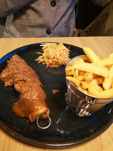 Read moreOp een onverwachte plek eigenlijk een heel erg leuk restaurant. Bij binnenkomst viel op dat er helemaal geen andere gasten aanwezig waren, maar wij waren hier ook wel erg vroeg. Super leuke serveerster die vlot de drankjes op tafel zette en vervolgens de bestelling opnam. Broodplankje om het wachten te verkorten doet het altijd goed. Als voorgerecht hadden we een carpaccio met truffelmayonaise. Prima, niets op aan te merken. Hierna kwam het hoofdgerecht, voor mij de spareribs en mijn vrouw de saté. Heeeeeerlijk! Wat een vlees aan de ribben. Geen sausjes, maar met deze smaak sensatie ook niet nodig! Klein beetje patat, maar dat is eigenlijk overbodig. Mijn vrouw vond de saté erg lekker maar iets te zout voor haar smaak. Vlees was wel heerlijk mals. Als nagerecht een crème brulee en mijn vrouw het verse fruit. Kortom prima restaurant op een verassende lokatie. Ze verdienen het om een...
