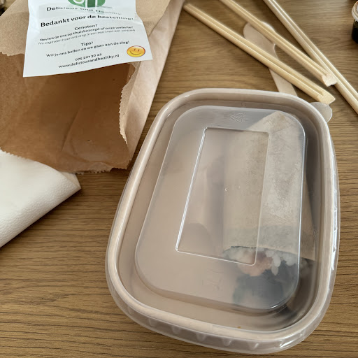 Zelf had ik geen idee wat een pokebowl was, tot mijn verbazing was mij eten koud. Dit tot hilariteit van mijn vrouw, ik houd er nou eenmaal van als mijn eten warm is. Zodoende heb ik mijn maaltijd opgewarmd (sorry voor de echte pokebowl fans) en ik heb heerlijk gegeten. De bijgestelde groenteloempia's waren nog goed warm en lekker knapperig maar het was de sweet chilisaus die mij verraste!