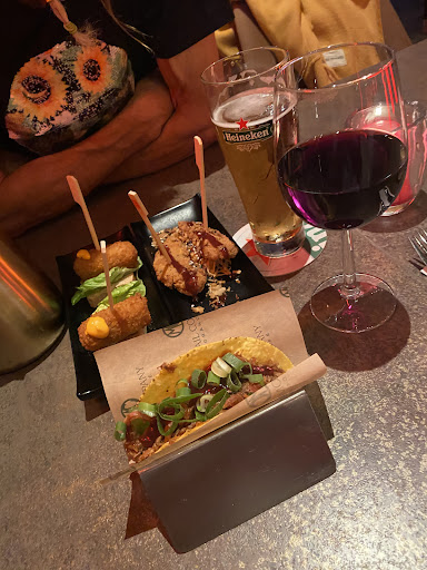 Very nice place to eat and have a drink. The concept is shared dining so little bites to a surprise menu for 4 with 8 dishes is 78 I believe so around Eur 20 a person. The personnel is friendly good fast service drinks took a little longer then the food but we ordered cocktails so that's maybe why. I would choose a seat a little further from the entrance of the bar as the music can be a little louder. After we asked it was turned down a little. We were there on a Saturday evening but if I could give a suggestion is turn the music a little lower so people can talk and understand each other maybe a little better. We were seated next to the speakers so that might also be why it was louder. I do like the place and I definitely will be back for a drink and a bite. Its a good new addition to Zaandam for a nice evening out. Edit I know they have changed the concept so no...