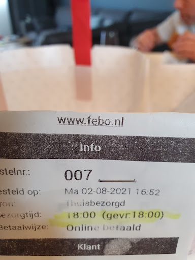 Wat een wanprestatie wordt hier toch geleverd door het personeel. Ten eerste een kwartier wachttijd bij de drive op de bestelling met maar 1 wachtende auto voor ons. Dan verteld de medewerker dat ze niet zoveel kipkrokantjes hebben ( we bestelden er 6) , maar ojee ze zijn op ( om 18.00 uur 🤔) . Dan maar kippebout, maar ojee nog maar 1. Bij thuiskomst bleek deze totaal uitgedroogd te zijn ( zie foto)🤬. Bij de grillburgers hetzelfde verhaal. Oude droge broodjes. Elke keer als we daar wat halen, hopen we op verbetering. Valse hoop dus. Voor ons de allerlaatste keer dat we daar ons geld (ruim 37 euro) voor oude droge troep hebben besteed. Sorry febo, dit ben ik niet van febo gewend. Hoewel van febo wormerveer...