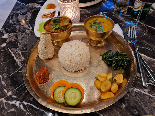 Read moreWe went there for the 2nd time since the food was delicious although service wasn't great last time. Similar experience this time- food was decent and service could be improved even though there were total 3 tables (total 6 customers). I was expecting the vegetarian thali to have a starter, main, bread/ rice, side+ dessert as it's served in most other restaurants. But that wasn't the case. There was poppadoms, small amount of salad (just carrots and cucumber), rice, dal, small amount of fried potatoes (which weren't even Nepalese or Indian), potatoes and cauliflower side dish and small bowl of lentils. The chicken madras ordered separately was excellent though. Next time I'll get takeout since the food is decent and it's hard to get a good curry...
