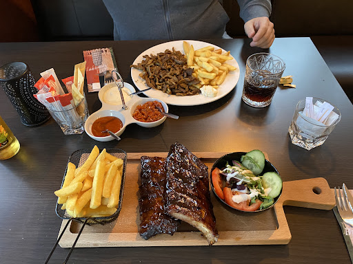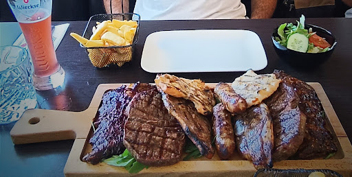 In a quiet area, hassle free parking. The Restaurant has modern touches and most importantly it is clean. Has a vast menu burgers, meat, pasta, kids menu too etc. We opted for the Mixed Grill for two. It nicely served on a wooden board and has 4 types of meat and sausages...all of this by 2!! It is a big portion served with salad and fries. So affordable! Staff are very kind and speak English...