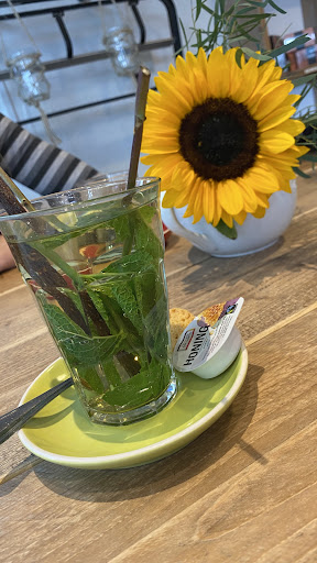 Last minute een high tea geregeld voor 3 personen. Het was super warm, we konden op het terras zitten. Dat was heerlijk. Stond een lekker briesje. Er stond een welkomst bordje klaar. Super leuk. Tafeltjes buiten gezellig gedekt. 3 gangen high thea, waarvan 2 volwassenen en 1 kind. Thee was ook heerlijk. Met eigen keuze aan thee zakjes. Was echt heerlijk. Soepje met iets hartigs en poffertjes voor onze dochter. Broodjes met kiprollade, zelfgemaakte eiersalade, geitenkaas met honing. En kinder high tea worstenbroodjes en kleine broodjes met komkommer en tomaat, kaas en jam. Heerlijk. We vonden 1 bolletje wat droog, maar dat is persoonlijk natuurlijk. Daarna zoet. Zo lekker. Allemaal zelf gemaakt. We konden het niet behappen. We kregen het mee in een tasje. Ontzettend keurig. En fijn om te zien dat het niet weg gegooid wordt. Leuke setting binnen en buiten. Keurige toilet. Schoon bestek, borden en drinkglazen. Vriendelijk personeel. Het enigste min puntje was de muziek die boven het restaurant gedraaid werd. Tante tee kan daar volgens mij niets aan doen, volgens mij de boven buurman. Vreselijke muziek, stond irritant hard. Maar goed.. De high tea en alles erom heen maakt dat we zeker terug komen....