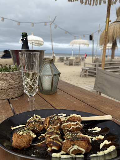 I reserved a beach dinner at Kayuka Zandvoort with three girlfriends. We ordered the nachos, chicken karaage, and satay chicken sticks. The food was tasty overall, but unfortunately, my satay chicken was raw on the inside, which made it inedible and quite concerning.