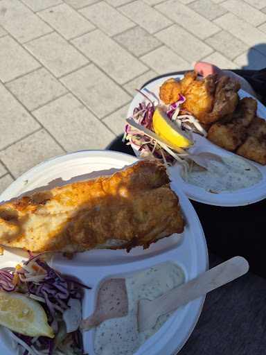 Ein Mal und nie wieder! Der Verkäufer war richtig mies gelaunt. Als wir bestellten und dies für ihn scheinbar nicht „schnell genug“ ging, reagierte er äußerst genervt. Er selbst ließ sich bei seiner „Arbeit“ allerdings alle Zeit der Welt…. Außer uns war kein Kunde da (kaum verwunderlich im Nachhinein) und dennoch warteten wir knapp eine viertel Stunde auf 3 kleine in Ketchup schwimmende Portionen Pommes und 2 aufgewärmte, ölig und viel zu fett panierte Schollenfilets. Aus den Schollenfilets, die wir eigentlich ohne(!) „Extras“ bestellt haben, wurden letztlich Schollenfilets mit(!) Extras, welche uns der junge Mann - passend zum Essen - pampig auf den Tresen pfefferte. Auf unsere Irritation darüber und dass aus dem ohnehin überteuerten Essen plötzlich stolze 30€ zustande kamen, erwiderte er, ob wir zu blöd wären die Karte zu lesen…. (Kunden-)Freundlichkeit scheint für diese Person ein absolutes Fremdwort zu sein. Von dem Fraß, den man für viel zu teures Geld „serviert“ bekommt, ganz zu schweigen. Jemand wie er sollte besser einen Job ausüben, bei dem soziale Inkompetenz keine Rolle spielt….
