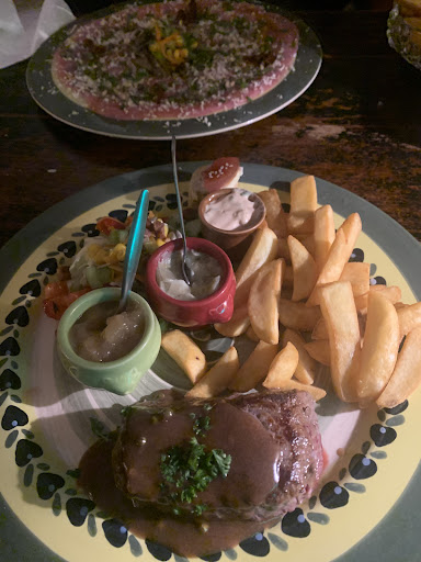 Mijn biefstuk was erg rose gebakken, maar er was niet gevraagd hoe ik dit gebakken had willen hebben. Ik had hem liever medium-rare gehad (en nee, ik ben niet iemand die gerechten terug stuurt de keuken). Pepersaus was heel waterig. Mijn vriendin had een Carpaccio XXL, msaak was niet overdonderend. Voor beiden waren de frietjes niet allemaal goed gebakken.