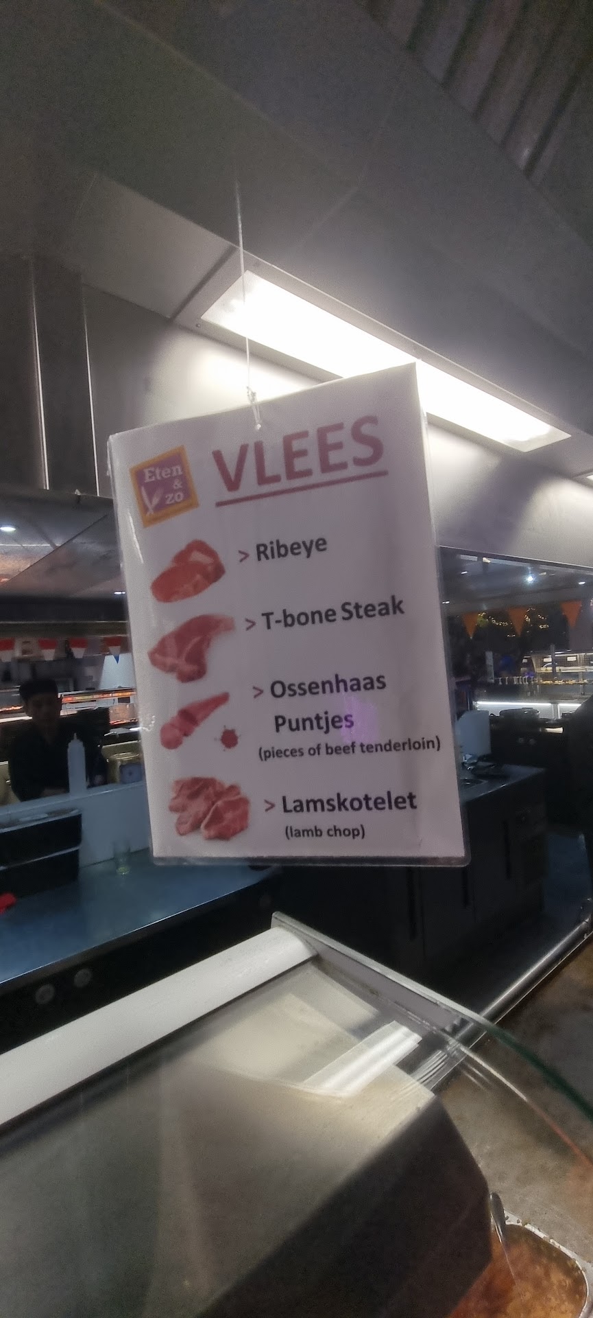 Pros: Easy to find, big parking place. Interior design feels quite relax and comfort, easy access from dining area to food area. 2 free alcohol-drink per person, softdrink and coffee and tea totally free. Big selection of beef steaks from Ireland, Argentine, America. Kangaroo steak is extraordinary delicious. Ireland black Angus beef steak is very soft and juicy, my favorite. Lamb steak is just perfect qua proportion between fat and meet, also cooked very nicely, leading to be very tender and juicy. Also various fish ("sliptong" and "haai") are cooked very well, juicy inside and crisp outside. Pizza is prepared and baked as in a Pizza-specific restaurant. Huge selection of salads and deserts, 8 types of ice cream are available, and taste are better than most of all you can eat we've tried before. Sushi and sashimi are very fresh (feels like more fresh than most of other all-you-can-eat we've had elsewhere) and delicious.