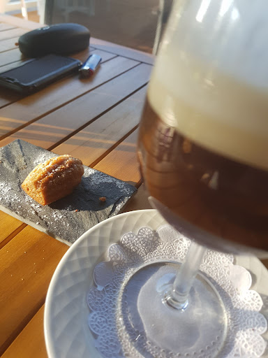 Food was good, I had a croque madame, which was good. I was impressed with the salad/ garnish on the side, which was very nice, and they clearly made an effort there. I had a coffee as well, which came with a small madeleine. They make them themselves, and they were very good. A bit more moist than I am used to, which I really liked. The apple pie comes from a bakery, and that was not my favourite, but it was ok. Considering the madeleines, it would be nice if they could make their own apple pie as well. Even so, it would have been better if the pie had not been so cold, and the cream was not that great either. Those seem easy enough to improve. There is a large parking lot, but it is closed off with a gate before 10.00. So if you count on parking there and taking a walk first, you have to drive on a bit, there is a parking lot a bit further on. I was told that there is a large sign indicating the entrance, but I missed it and found that a few more signs would have been useful. They could have said somewhere that the entrance is...