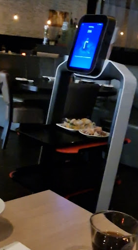 Het enige leuke van de hele avond was de robot die show steelde door een keer het eten te komen bezorgen.