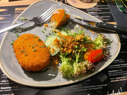 Ā Ā Ā Read more5 man gereserveerd 20.00 uur. Na het voorgerecht door 2 verschillende dames gevraagd of het hoofdgerecht kon doorkomen, nee we willen even wachten. Blijkbaar had de keuken onze gerechten al klaar onder een lamp staan want nadat we aangaven het hoofdgerecht te willen stonden ze binnen 3 minuten op tafel. De medium biefstuk was helemaal door dus dit terug gegeven, ze komt met biefstuk terug uit keuken met de opmerking je kunt hem zo of een nieuwe maar die wordt dan medium rare. Was idd medium rare, en ontzettend ongezellig voor diegene ( notabene een slager) om alleen aan het hoofdgerecht te zitten daar onze gerechten lauw waren. Bier 3 glazen te lang op de bar gestaan en door een zeer onervaren serveerster zo op tafel gezet zonder mooie schuimkraag en niet op idee komen het lege goed mee te nemen. De kaasplank werdt geserveerd met Port, op de enorme fles staan de kaas soorten, bijna niet te doen om te lezen met zeer klein mooi lampje op tafel. Ook geen uitleg met welke kaas te beginnen zoals je normaal hoort te krijgen als je kaasplank neemt. Het eten was niet verkeerd maar zeker geen wow we gaan...