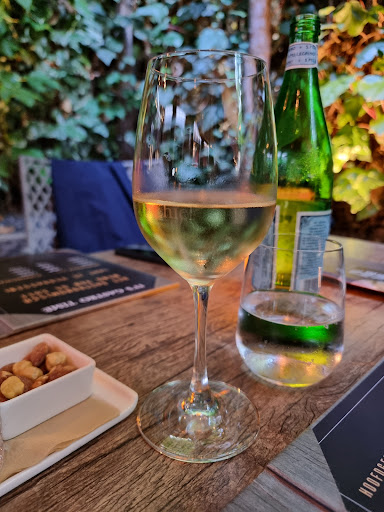 Een glas wijn van nog geen 100ml kost 9.50, wel goede wijn! Maar best aan de prijs voor zo'n glaasje! Een watertje? vragen ze, en of je bubbel of plat water wil, dan krijg je een fles op tafel, wordt wel keurig in je waterglas geschonken. Maar we hadden niet om een fles gevraagd. De fles stond voor een aanzienlijk bedrag op de afrekening.