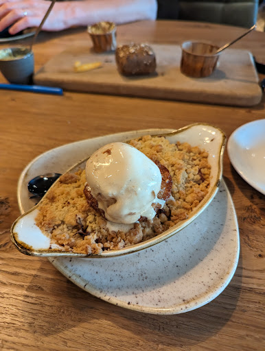 Dochter had geen ruimte meer voor een toetje maar man en ik hebben (met moeite 😅) nog de crème brulee en de apple crumble soldaat gemaakt met een kopje koffie erbij.