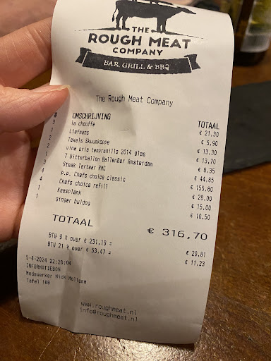 De meest teleurstellende "Uit eten" ervaring ooit. We waren met 4 personen. Ik vroeg expliciet aan de serveerster wat het malste stukje vlees was. Ze kwam met een aantal aanbevelingen o.a. de entrecote. Ik zei "Nee, daar zit altijd een vetrandje aan". Ze gaf aan dat ik dan het beste de Brisket kon bestellen want "die smelt op je tong". Ik weet niet wat Brisket is, maar heb haar aanbeveling gevolgd en besteld. Toen kwam het vlees: Het was Vet vet vet en ca. 1 cm vlees en weer vet vet vet. Echt van dat drillende witte vet. Ik gaf meteen aan dat ik dit niet ging opeten want ik had juist aangegeven om mals vlees en geen VET te willen. Toen kwam de kok uit de keuken "Ja mevrouw u heeft wel Brisket besteld en daar zit wel een vetrandje aan". Ik gaf aan dat ik juist had gevraagd om geen vet en niet wist wat een Brisket was. Toen kreeg ik nog na zo'n 10 minuten wachten een half portie spareribs die ik alleen kon opeten want mijn tafelgenoten waren al klaar met eten. Toen mijn man ging afrekenen bleek dat ze 50% van de Brisket eraf hebben gehaald. Als ze het netjes hadden opgelost hadden ze het voor 100% eraf gehaald want ik heb immers niet gehad wat ik besteld heb. Maar bij het controleren van de rekening bleek, dat ze i.p.v. 1 GLAS rosé wijn 1 FLES op de rekening hebben gezet. Toeval????