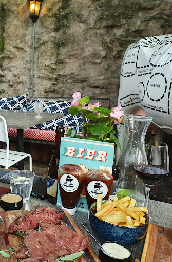 Read moreMooie zaak met uitstekende vlees, alleen heeft het maar een zesje verdient. De aftrek van punten komt door de bediening, die niet meer kan dan dat brengen wat je besteld hebt, en dat ook nog wel eens vergeet. Je moet dan een tweede keer vragen waar het blijft. Je kan ook lang blijven wachten tot ze eens langskomen terwijl je fles wijn al leeg is en je graag nog een tweede wilt. Onze eerste fles was trouwens niet koud maar licht gekoeld. Was blijkbaar pas net in de koeling gezet. We waren er mijn zijn vieren en drie van ons had steak. Elke steak was 1 fase verder dan we hem besteld hebben. Mijn steak bestelde ik bleu, moest nog moe zeggen, superrood. Ik kreeg hem Medium. Toch was de buitenkant niet echt aangebraden, de kok parkeert de steak blijkbaar in de oven of andere warmhoud plek om hem verder te garen. Sorry, maar dat is een zwaktebod. De kwaliteit van het product dat hij verwerkt was erg mooi. Prachtige en smaakvolle drooggerijpt rundvlees. Zonde dat het dan in de bewerking zo misgaat. De mayo bij de friet was zoet, de friet met frietkruiden voorzien. De bijlages kwamen in kleine porties en men bleef deze weliswaar na rijken toen wij er om vroegen, niettemin jammer. Kortom, nog heel veel ruimte om je...