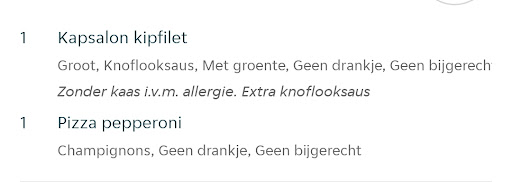 Read more45 minuten over tijd .... Bellen niet mogelijk,geen bevestiginsmail, geen mailtje dat het langer duurt Mijn vrouw stond op het punt om een broodje te smeren, in plaats van nog langer te wachten. Het lijkt een trend te worden: Via thuisbezorgd.nl prima, maar via de eigen website sucks.. Een paar maanden geleden ook al eens in de auto gestapt om zelf de bestelling maar op te halen. Nu maar weer gedaan. Er lag een 2 Euro munt klaar voor de bezorgert, uit #respect. Het ventje zat te wachten in de winkel. Toch maar z'n tip gegeven. Hij kan er niets aan doen. Telefoon...