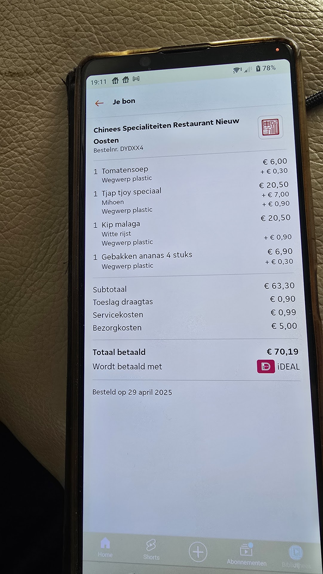 En geen eten.... Geef je dan bijna 60 euro aan uit om nog ff 18 euro bezorgkosten voor te...