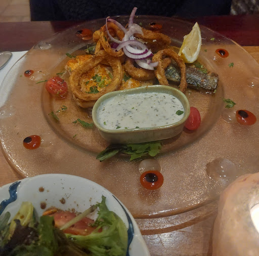 Read moreEven er tussenuit. We hebben heerlijk gegeten. Porties waren ruimvoldoende voor ons, leuke en smaakvolle combinaties van vlees en vis en zeker goed op smaak / gekruid. Gelukkig geen gigantische hoop gyros bij de Mythos schotel. Zeer vriendelijke en attente bediening. Niet helemaal duidelijk was waarom er enorm scherpe peper/chili saus op het bord bij de vis gepresenteerd werd. Vis is delicaat en subtiel in smaak, de pepper brand letterlijk alle smaak weg. Antwoord was garnering / decoratie. Echter de kans is groot (als je dit niet vooraf aangeeft) dat de gast het probeert omdat het op het bord ligt - logisch want daarom liggen dingen op je bord. Ik zou adviseren de combinatie of presentatie te heroverwegen. Tenzij het misschien iets typisch Grieks is en dan ben ik een...