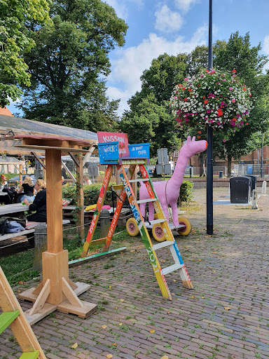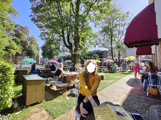 They only have seats outside and there are alot of picknick benches.. but when it is crowded they only have these sitbags or little boxes to sit on. Which in not comfortable. I know it resonates with the style.. but there enough space for normal chairs.. we did have to wait quite a bit to be served aswell. And saw People who came in after us be helped before us.