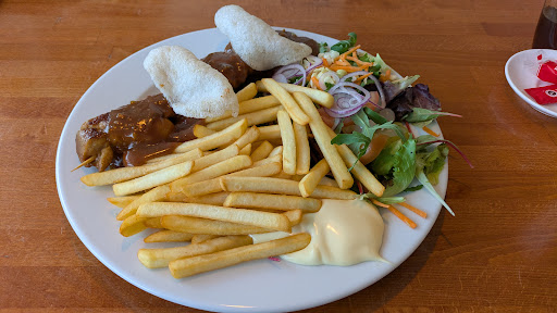 Indien de kwaliteit goed is ben ik best bereid om wat meer te betalen. Losse zak friet voor 4 personen niet mogelijk want staat niet op menukaart dus 4 ' grote' patat van € 3.60 incl saus = €14.40!! Dezelfde hoeveelheid friet koop ik verder op voor € 6.30. Br. Hamburger spec. met 3 stukjes uitjes? Gehaktbal muf van smaak. Sorry kan er niks...