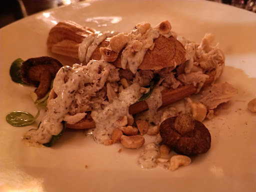Read moreI gave 5 stars for the ambiance, this restaurant is gorgeous on each and every floor. It is designed in a old French-style, it reminds of the Moulin rouge or a old Italian teather. Beside the stunning interiors, it offers a 3-course menu with different choices available for the starters, main and dessert for a real fair price. In our group of 4 we chose different dishes and they were all good. The personnel was nice and friendly. Some vegetarian options are available for each course. Photos of food are: starters pulled chicken and dessert...