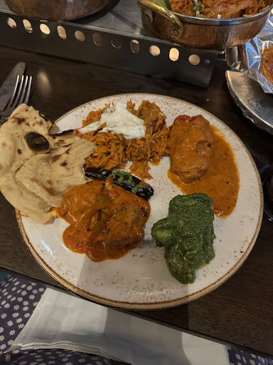 The food was okay at best. The spinach dish was undercooked and the paratha was not really a pratha. I donāt even know what it was but it was dry. I also felt that all the food had red dye in it and not any spices. It is a very white washed in term of spices. However I will say that the naan was soft and tasted good. The dessert (kulfik) was also amazing. It tasting like authentic Indian food.