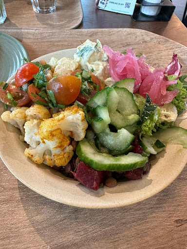 Op het eerste gezicht, een mooie zaak. Netjes ingericht en alles keurig op zijn plek. Het is een restaurant met zelfbediening en eerlijk is eerlijk .. keuze zat. Wij hadden onze keuze gemaakt dus afrekenen en aanvallen. Plekje gezocht, met uiteraard een aardig uitzicht en los.