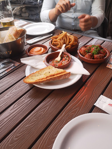 After a 15-minute wait, the food arrived, and we were disappointed. The calamari were fluffy and smelled off, and the alioli was just mayo mixed with herbs instead of the traditional garlic and oil or garlic mayo. The chorizos were decent, but overall, it's more of a place to have a drink and eat nachos rather than authentic Spanish cuisine.