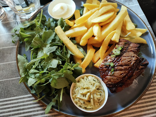 Read moreEr staan genoeg en lekker uitziende gerechten op de menukaart. Echter viel het eten zeer tegen. Alle groenten verzopen in de jus (die niet echt smaak bevatte), groente was slap en viel uiteen (diepvries spul leek het op), was soft en zat weinig smaak aan. Eveneens als het vierkante aardappel garnituurtje, amper smaak en met een dikke zure saus, slechte combo. De steak was helemaal doorbakken (nou eerlijk gezegd nog maar net, op hier en daar wat rauwe plekjes) terwijl het medium zou moeten zijn. Ook vond ik de steak zowel als in het voor- als hoofdgerecht heel droog en redelijk smakeloos. Geen enkel spoor van kruiden en een beetje bitter. De sla was amper aangemaakt en het had dikke, grote stukken ui wat niet lekker was.