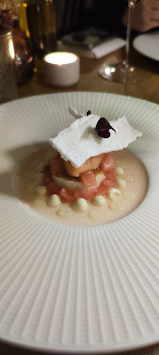 De gerechten zelf waren veelzijdig en creatief, met een opvallend gerecht zoals vegan foie gras gemaakt van cashewnoten. Een interessante benadering, al had dit gerecht voor mij persoonlijk ook met echte foie gras uitgevoerd mogen worden. Over het algemeen wisselden de gangen elkaar goed af, maar hier en daar miste ik wat verfijning in de details. In sommige gerechten had een extra 'hoge noot' in het smaakpalet niet misstaan, en af en toe neigden de smaken iets naar de zoute kant.