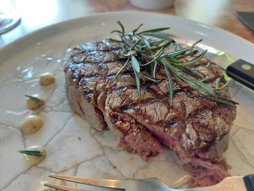 The Negroamaro house red had tiny hints of spicy chocolate, which delighted me. The tiny potatoes were perfectly cooked. The appetizers (carpaccio and bruschetta) had absurd amounts of flavor. My only complaint is that there wasn't enough of the delicious sauce to cover more than about 15% of the tenderloin (ossenhaas, as the Dutch call it; sirloin/entrecote was also an option), so when I give this place 5 stars, it's because everything else was that impressive. I've never had a better carpaccio--perfect proportions, and almost everything I like; arugula, pine nuts, the right sort of cheese; they even gave me an extra of sun-dried tomato (be aware that there was an extra charge for that, however.) Though it might be traditional, the pesto was a unique twist for me; I've only had carpaccio with a lemon-olive oil dressing.