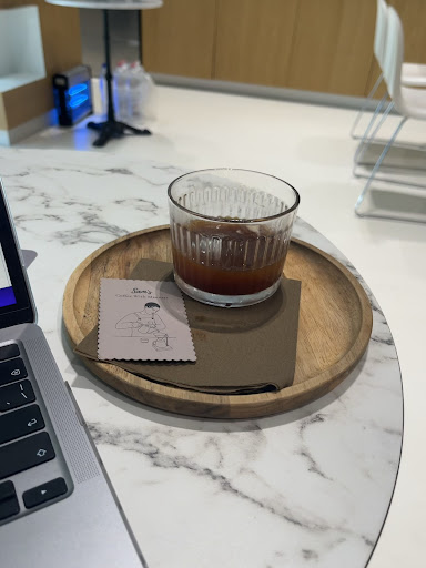 Sam's Coffee serves delicious specialty coffees. The ambience inside was ok, but not overwhelming, but outside you can sit very nice in a pedestrian zone. I like the choice between two beans and that you don't have to pay extra for one of the two roasts. Unfortunately, I can't say whether the beans change over time or are always the same. I found the Guatemalan roast to be very tasty and also tried the Italian business roast for comparison, but it didn't develop its flavor in my cappuccino. Overall, though, the coffee was delicious. However, I do have a few points of criticism. I'm not a fan of ordering from the table with a QR code, but that's personal. I just miss the interaction and communication with the people making the coffee. Unfortunately, I have to take away one star for the expensive water, because I think tap water can be served for free and the amount you get for the price was super little. Also, it took a long time to order because we had 6 coffee drinks. Although this was well communicated, other guests received their drinks much sooner. Maybe the orders should be handled...