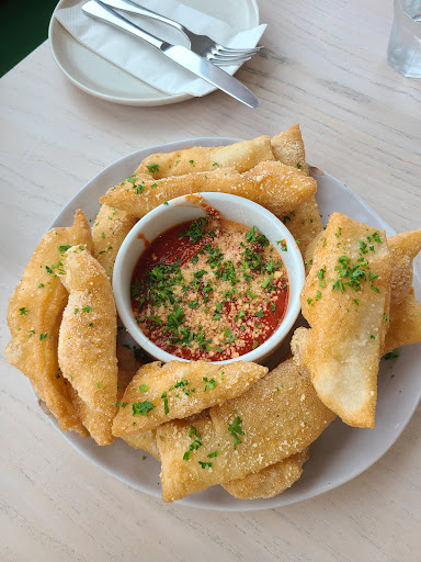 Read moreDante's is one of the restaurants in the Eatery at Eastridge. It is the one closes to the entrance so it has its own tables, both inside and outside. There is a specials board on the outside and they have a menu out front so you can have a look at what they have. They do both pizza and pasta. The pizzas here are quite nice, made with sourdough and quite soft and airy. My friend said it was similar to ones they had in Naples, the only difference being the tomato sauce. The crust was quite nice to eat, almost like a thin, crispy piece of bread. It didn't have a lot of crunch at the base, it was quite soft. The pizzas are made to order in their special oven so you can see them make and cook it before bringing it to your table. They also do a calzone, a turnover made with pizza dough. The one we got was the nutella one. Dollops of nutella cooked inside the tasty dough and served with strawberries and cream. I enjoyed it since the dough wasn't super bready and there was so much nutella inside. It was quite a nice place for pizza. They also have tables near the shop so you can eat there. We were able to order items from a different place and eat it there.