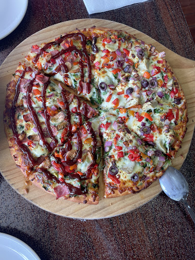 Had the tandoori chicken. Great pizza, base is thin and firm but not too hard to cut, theres a lot of topping so I use a knife and fork Fresh ingredients and good balance of flavors and they dont replace topping with more cheese like most places. They do gluten free bases but only the large size but the pizza is good enough quality its almost as good heated up the next day. Theres a small number of tables there and nice enough decor, always open when we need pizza, the gourmet pizzas are around $15 for medium and $24 for large, but with the generous topping I could only eat half a medium at one go so you get two meals out of it. Nice people too. Highly recommended.