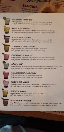 Drinks were good. Most of us had a non alc blood orange soda. Didn't have a margarita at this particular place, but if the staff are trained like the others, they won't disappoint either. Fresh and good. Yum. Drink was Sugar free too.