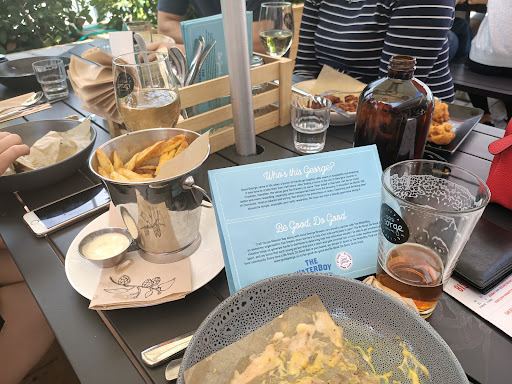 Not so Good George 😕 I visited in January with some friends and we ate on the terrace. I had the beef burger, my wife had the "tacos", and we shared a bucket of fries. We stayed for a while and I tried a few beers. The food mains are decently priced, with burgers around the $15 mark, but they come without a side. The bucket of fries costs $8, which is a lot, and I guess that it's supposed to feed two people as it is quite a large portion. It would make a lot more sense to serve a smaller portion of fries along with the burger for half the price so people wouldn't be forced to split side dishes. My burger was... mustard. I have no idea what it tasted like apart from the strong flavour of mustard. It was juicy and full of sauce but there was so much mustard that it all tasted the mustardy same. So, unless you love to eat spoonfuls of mustard, avoid the burger. The wife's "tacos" were two small tortillas folded in half with some lamb, kale (or similar), and other stuff. Not really great, not really filling, not really tacos.