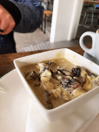 We ordered 2 x Classic Eggs Benedict, one with Salmon the other with Bacon, a side of creamy mushrooms and two coffees. The coffees were fantastic however the food was underwhelming. The creamy mushrooms arrived in a bowl drowning in cream, including large lumps of cream and were overly sweet and not seasoned well. The hollandaise too was unseasoned and lacking in flavour - it tasted like they had used lime instead of lemon and had an unusual taste. The rest of the food eg bacon, eggs, toast etc was fine.