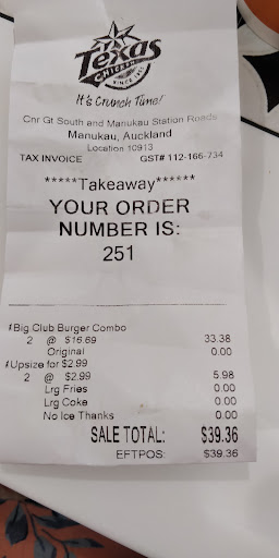 First time experiencing Texas Chicken at Manukau Mall 19/12/2018 9.15pm. Was a very long line with only one open till however I was very impressed with my clerk Angela. She was very polite, friendly and I soon got over the wait with her lovely customer service. Great job getting through as many orders as she could.