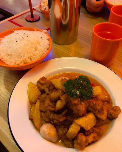 The staff who served as was super lovely and helpful, bought us tea to keep warm and a scoop of popcorn. This is a really cute place for a late night meal and gathering with friends, but the uniqueness of the meal in my opinion could be found in other places. Ordered the lychee pork with coconut rice. Pork is chewy yet tender with good flavor and the outside is crispy which really earns brownie points from me. However there was an underwhelming proportion of lychee-I only had a measly two pieces-but it was flavorful, very sour. There were also pieces of potato thrown in which tasted like mushy fries. The coconut rice also wasn't as coconut-y as I hoped. There was a slight essence, but it just wasn't enough for me to render it as 'coconut rice'. Overall though, underwhelmed. This was just a fancier sweet and sour pork to be honest, I wasn't blown away, but the proton size for the price...